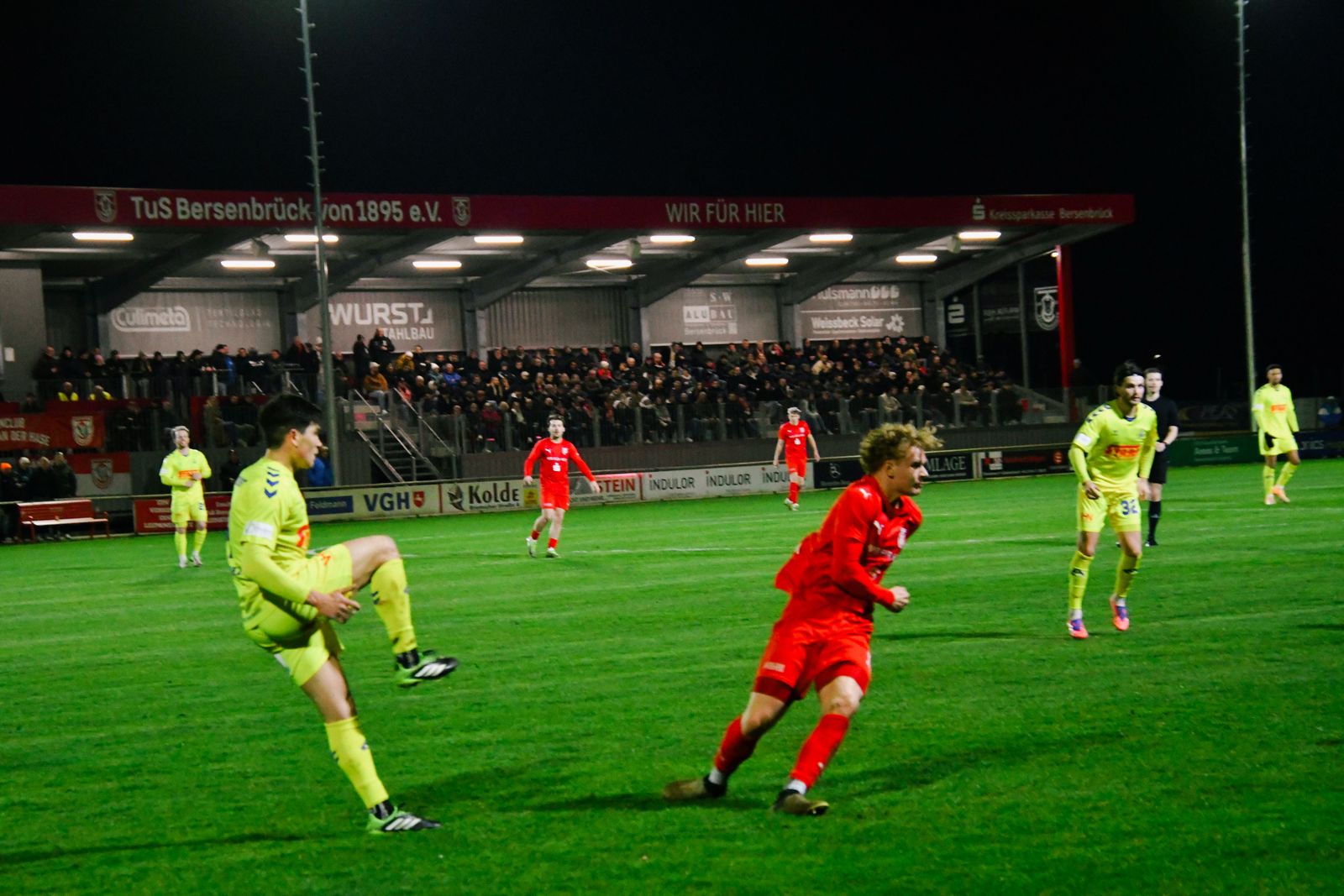 Das Hasestadion im Culimeta-Sportpark bietet mal wieder eine tolle Kulisse für den Amateurfußball. Mit der gefüllten Sitzplatztribüne, den vielen Zuschauern am Spielfeldrand und dem zahlreich angereisten Gäste-Anhang aus Delmenhorst ist am Freitagabend alles gedeckt für ein unterhaltsames Flutlicht-Topspiel. 652 zahlende Zuschauer sehen in der ersten Halbzeit stattdessen aber ein eher träges Spiel.