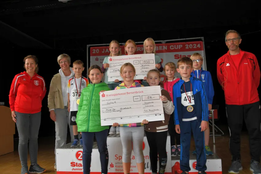 Wesentlich zu dieser hohen Anzahl an Sportlern hat der Schülerlauf mit 266 (Vorjahr 275) Finnischer beigetragen, weil die Grundschule Bersenbrück, die von-Ravensberg-Schule und das Gymnasium Bersenbrück sich zu einer Teilnahme motivieren konnten. Schließlich erhielt die Klasse mit der prozentual höchsten Beteiligung einen Scheck über 100 Euro für die Klassenkasse. Es siegte die Klasse 2 c der Grundschule vor der Klasse 3 e der Grundschule, die 50 Euro erhielt. Moderator Frank Glose schickte aufgrund der hohen Schüleranmeldungen zunächst die Jungen und anschließend die Mädchen auf die 1,8 Kilometer lange Strecke. Dies war gleichzeitig der 5. Staas-Junior-Cup-Lauf. Hier gewann bei den Jungen wie im vergangenen Jahr Leandro Weltermann Orccon vom SV Hesepe-Sögeln in 7:06 Minuten vor Vian Hasan, SC Melle 03 e.V. (7:29 Minuten) und Daniel Fehl, von-Ravensberg-Schule, (7:37 Minuten). Bei den Mädchen gewann Emilia Menger, DJK Arminia Ibbenbüren in 7:43 Minuten vor Madlen Stelmecke, SC Melle 03 e.V. (8:06 Minuten) und Aenna Bodmann, vom OSC-Damme (8:19 Minuten).