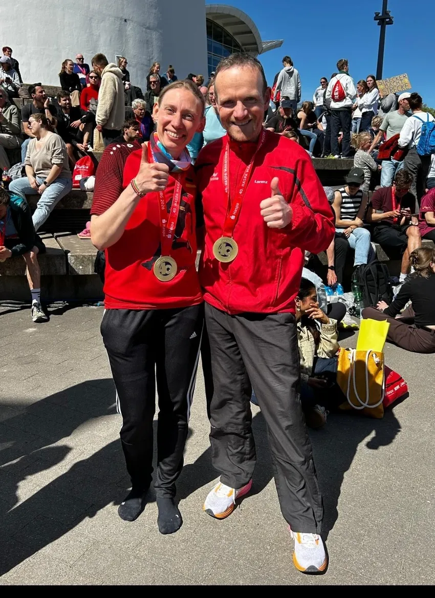 Wibke Groneick u. Lorenz Küthe nach dem 40. Haspa-Marathon in Hamburg